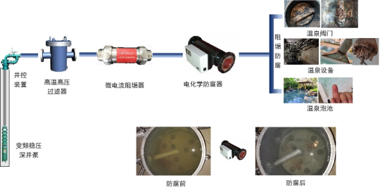 2023-05-01引言:温泉,因地下含水层受地热运动、地壳内部的岩浆作用或为火山喷发所伴随产生,而地下含水层在地热作用中沸腾形成的蒸气与硫矿层接触就形成硫酸盐泉。微电流阻垢及电化学防腐技术是一种针对硫酸盐型温泉水阻垢防腐研发的新型工艺,通过释放电子形成保护屏障,防止阴阳离子结合。相较于传统添加化学试剂方法具有不改变温泉水质,充分保证原汤原水;延长地热系统设备使用寿命;降低系统运维成本等优点。