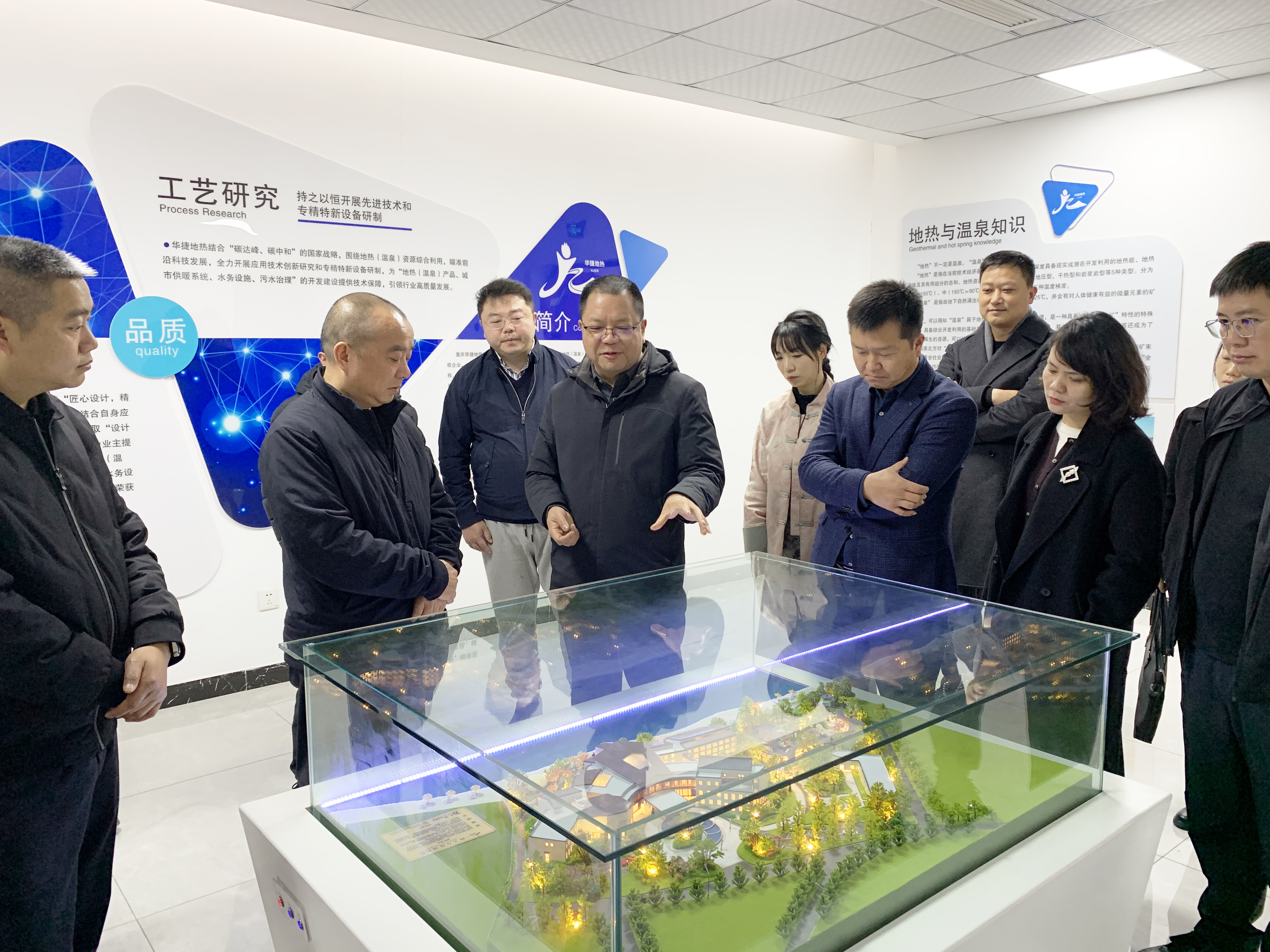 2025-04-03近日,云南水富市委书记施华松、市人民政府副市长欧锡海等领导莅临华捷地热考察调研。双方围绕地热温泉资源综合开发、智慧温泉建设及温泉康养产业升级等议题展开深入交流。华捷地热董事长蒋春华、箱根集团总裁王永毅全程陪同考察。