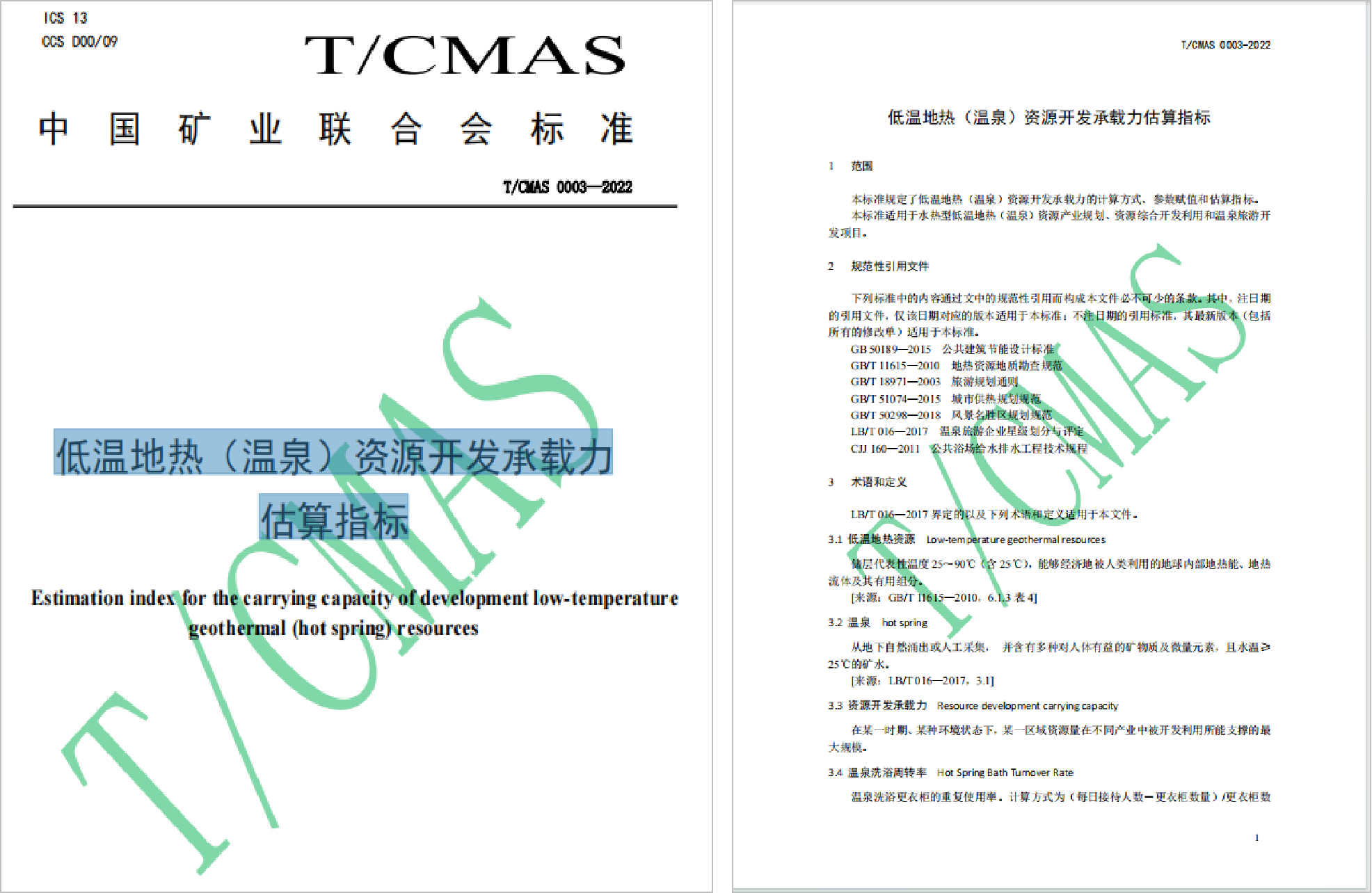 低温地热(温泉)资源开发承载力估算指标(团体标准)