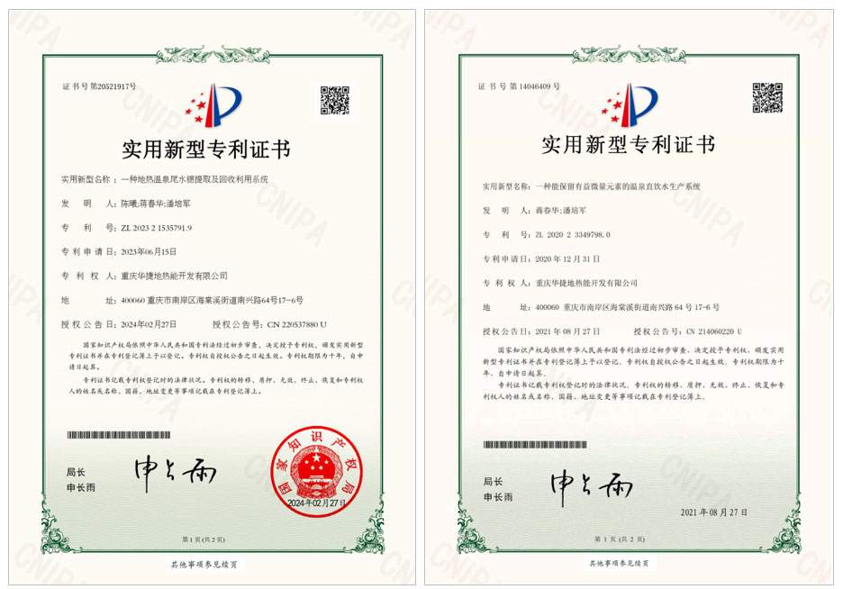 ① 一种天然温泉水浓缩灌装系统及装置(2个专利)