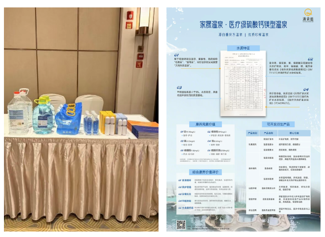 此外,清泉能在现场集中展示了温泉矿泉水、温泉喷雾、温泉浓缩液等温泉衍生产品,以这些创新产品为载体,将温泉应用技术转化为服务巴南大健康产业发展的实际成果。